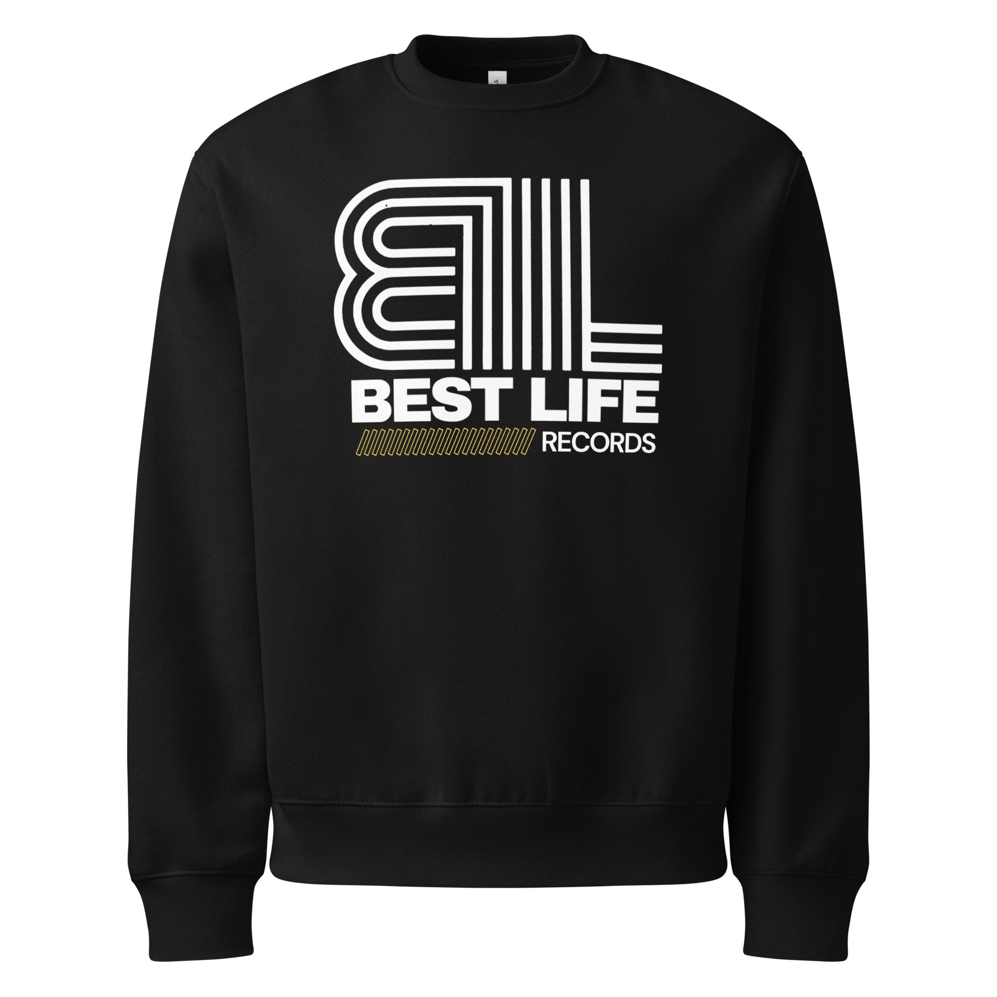 Its the logo, but this time its white and yellow on a black oversized heavyweight sweatshirt… because its aggressively cold out there, and I don’t want you to catch a cold.